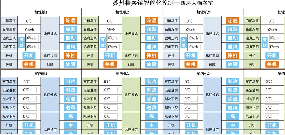 溫濕度控制:通過對大樓的溫濕度進行采集,控制加濕器、空調(diào)、新風進行溫濕度控制,可以實現(xiàn)恒溫恒濕的精密環(huán)境控制;