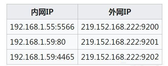 家庭網(wǎng)絡普遍使用端口映射的方式,NAT的核心是一張映射表(源IP地址,源端口,目的IP地址,目的端口),將內(nèi)網(wǎng)源IP地址和端口映射到同一個公網(wǎng)地址的不同端口,如下圖所示。