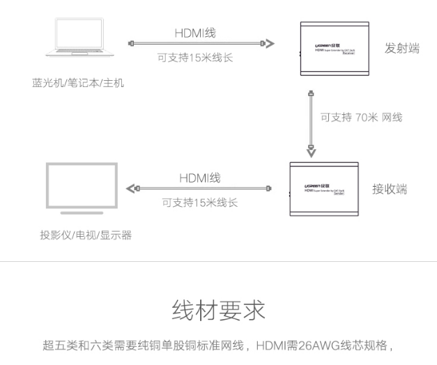 這種情況下如果只是單純的傳輸HDMI信號(hào)到顯示設(shè)備上,HDMI信號(hào)不經(jīng)過其他設(shè)備的話,我們可以采用網(wǎng)線延長(zhǎng)信號(hào)的方法,用HDMI網(wǎng)線延長(zhǎng)器來將信號(hào)延長(zhǎng),HDMI網(wǎng)線延長(zhǎng)器分為發(fā)送端(HDMI輸入,網(wǎng)線輸出)和接收端(網(wǎng)線輸入,HDMI輸出),可以延長(zhǎng)100米(5類網(wǎng)線)、120米(6類網(wǎng)線)。