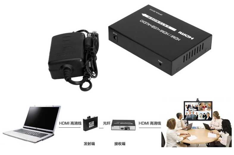 2、當(dāng)然如果需要傳輸更遠(yuǎn),也可以使用HDMI光纖延長(zhǎng)器。