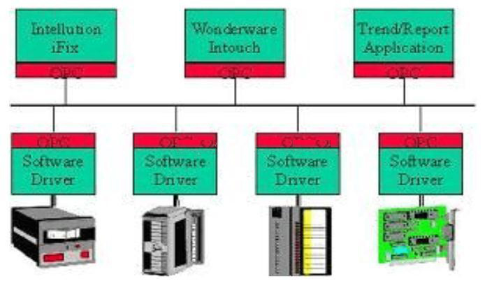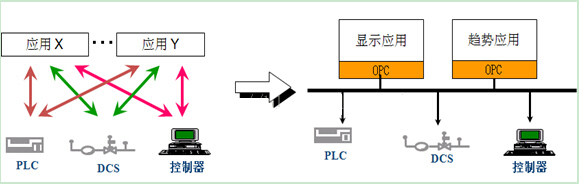 現(xiàn)在市場上的數(shù)據(jù)源有很多種形式:PLC、DCS、數(shù)據(jù)庫、Scale 、RTU等等。數(shù)據(jù)也可以通過多種媒介傳輸,如以太網(wǎng)、無限通訊、串口通訊等。過程應(yīng)用所依賴的操作系統(tǒng)也可以不同:Unix、Windows。 過去,設(shè)備供應(yīng)商提供自己的驅(qū)動程序來獲取數(shù)據(jù)。但這樣以來,供應(yīng)商就以一種專權(quán)享有的方式儲存下來。當(dāng)用戶每次需要對系統(tǒng)進(jìn)行改進(jìn)或擴(kuò)張時,用戶就必須和同一家設(shè)備供應(yīng)商聯(lián)系。從另一個角度來看,在傳統(tǒng)的控制系統(tǒng)中,智能設(shè)備之間及智能設(shè)備與控制系統(tǒng)軟件之間的信息共享是通過驅(qū)動程序來實現(xiàn)的。不同廠家的設(shè)備使用不同的驅(qū)動程序,致使工業(yè)控制軟件中包含越來越多的底層通訊模塊。另外,由于相對特定應(yīng)用的驅(qū)動程序一般不支持硬件特點的變化,這樣,使得工業(yè)控制軟、硬件的的升級和維護(hù)都極為不便。還有,在同一個時刻,兩個客戶應(yīng)用一般不能對同一個設(shè)備進(jìn)行讀寫,因為他們擁有不同的、相互獨立的驅(qū)動程序。同時對同一個設(shè)備進(jìn)行操作,可能會導(dǎo)致沖突甚至系統(tǒng)崩潰。 OPC技術(shù)的出現(xiàn)很好的解決了這些問題。OPC技術(shù)的出現(xiàn)解決了這種客戶相對被動的局面,因為它是一種技術(shù)平臺。不論客戶端是誰,不論客戶端使用哪種工程控制軟件,只要它理解OPC語言,都可以順暢無阻的從設(shè)備中取得數(shù)據(jù)。 作為有20年基礎(chǔ)的強(qiáng)大技術(shù)平臺,OPC擁有一整套包括接口、屬性和方法的標(biāo)準(zhǔn)集。從而提供給用戶用于過程控制和工業(yè)自動化應(yīng)用。舉個例子來說明,在一個龐大的數(shù)據(jù)共享網(wǎng)絡(luò)中,OPC扮演什么樣的角色。一個跨國公司中有來自各個國家的人,說不同的母語,但他們卻能很好的交流,這就是英語作為交流平臺的作用。同樣,OPC就扮演這樣一個數(shù)據(jù)傳譯器的作用。