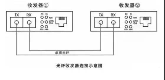 雙纖收發(fā)器有TX口(發(fā)射口)與RX口(接收口),兩個(gè)口都是發(fā)射一樣的波長1310nm,接收也都是1310nm,所以接線時(shí)采用的平行的兩根光纖交叉連接。