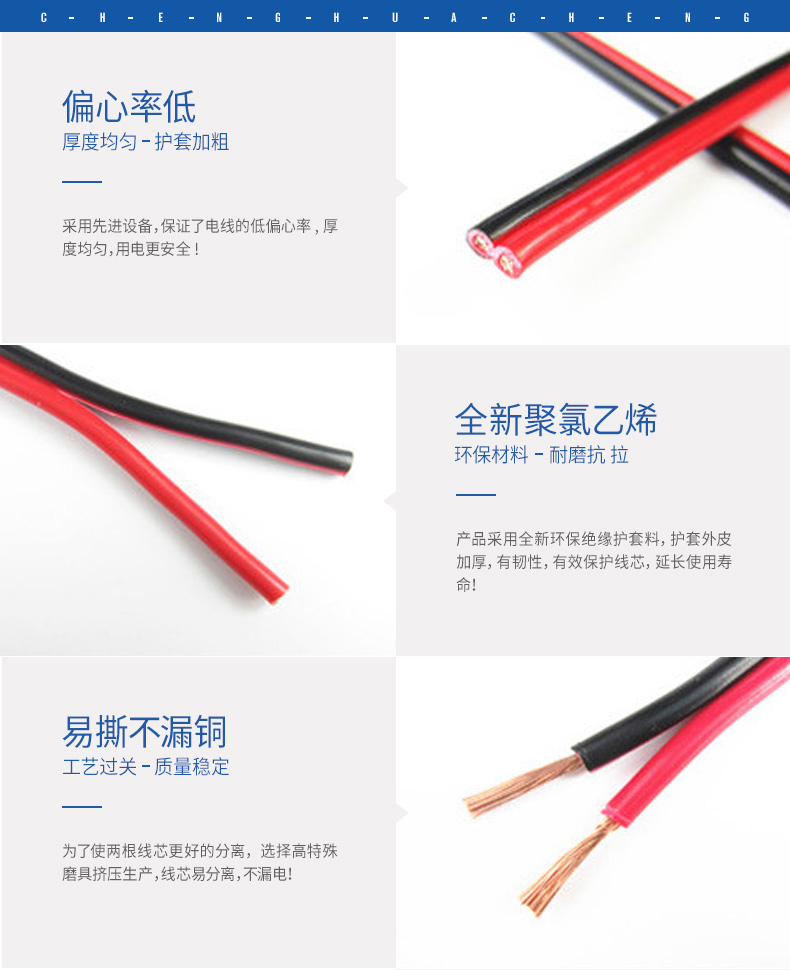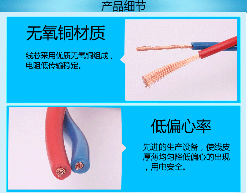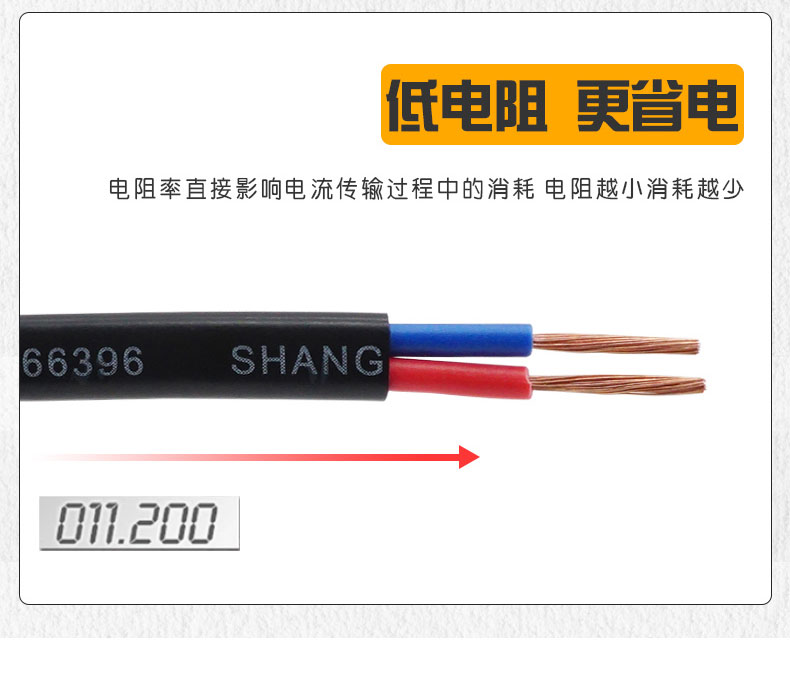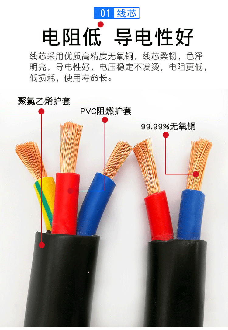 2.適用于家用電器、小型電動(dòng)工具、儀器儀表及動(dòng)力照明用線(xiàn)。雙白芯用于直接接燈頭線(xiàn);紅藍(lán)芯用于消防、報(bào)警等;紅白芯用于廣播、電話(huà)線(xiàn);紅黑芯用于廣播線(xiàn)。