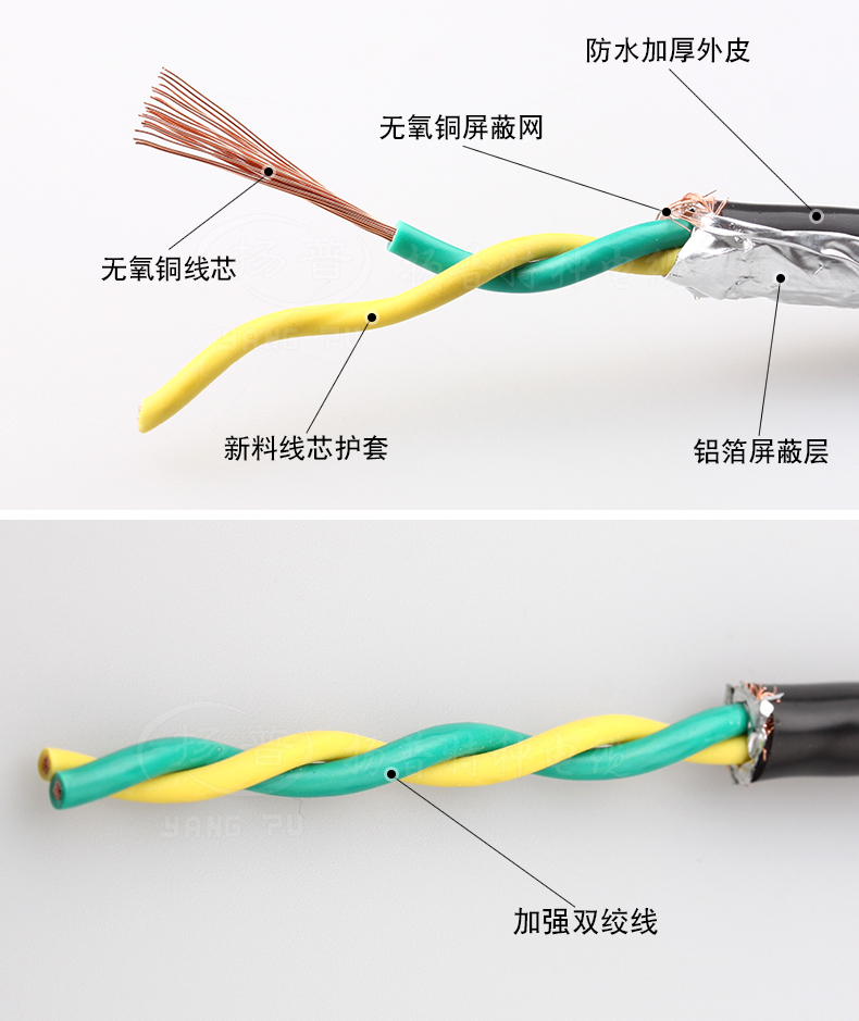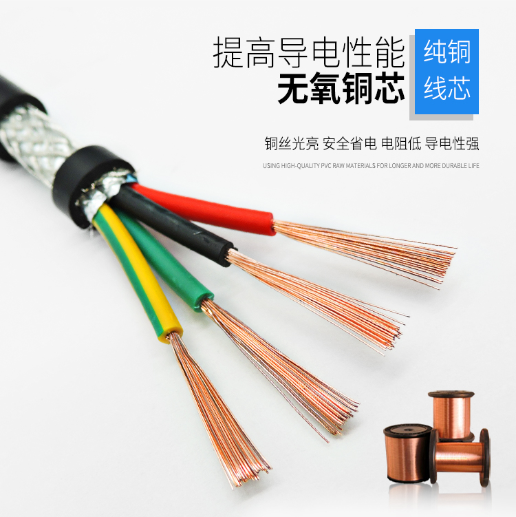 RVVP對(duì)比RVV多了一層屏蔽編織網(wǎng),PVVP線(xiàn)在內(nèi)外護(hù)套之間有一層網(wǎng)狀的銅絲層作為屏蔽層----屏蔽層主要是為了防止外界電磁場(chǎng)的影響,以提高線(xiàn)材的抗干擾平衡度。