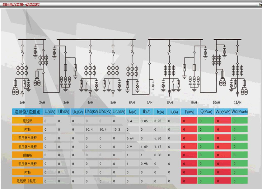 2、供電高壓側(cè)監(jiān)測:對供電高壓側(cè)的電壓、電流進(jìn)行實(shí)時(shí)監(jiān)測,將采集數(shù)值存入數(shù)據(jù)庫,為數(shù)據(jù)查詢和曲線輸出提供依據(jù)。