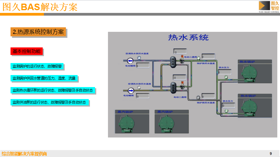 3、聯(lián)鎖控制:根據(jù)負(fù)荷啟動熱交換器工作參數(shù)。熱水泵停止運(yùn)行時(shí) ,自動關(guān)閉熱交換器一次側(cè)的熱水/蒸汽電動調(diào)節(jié)閥。
